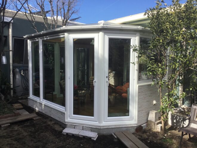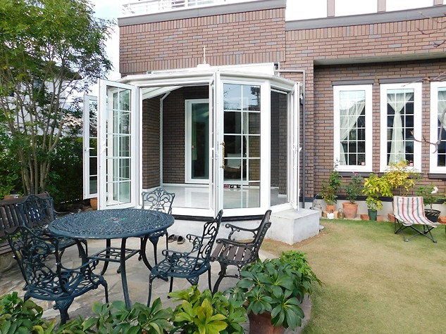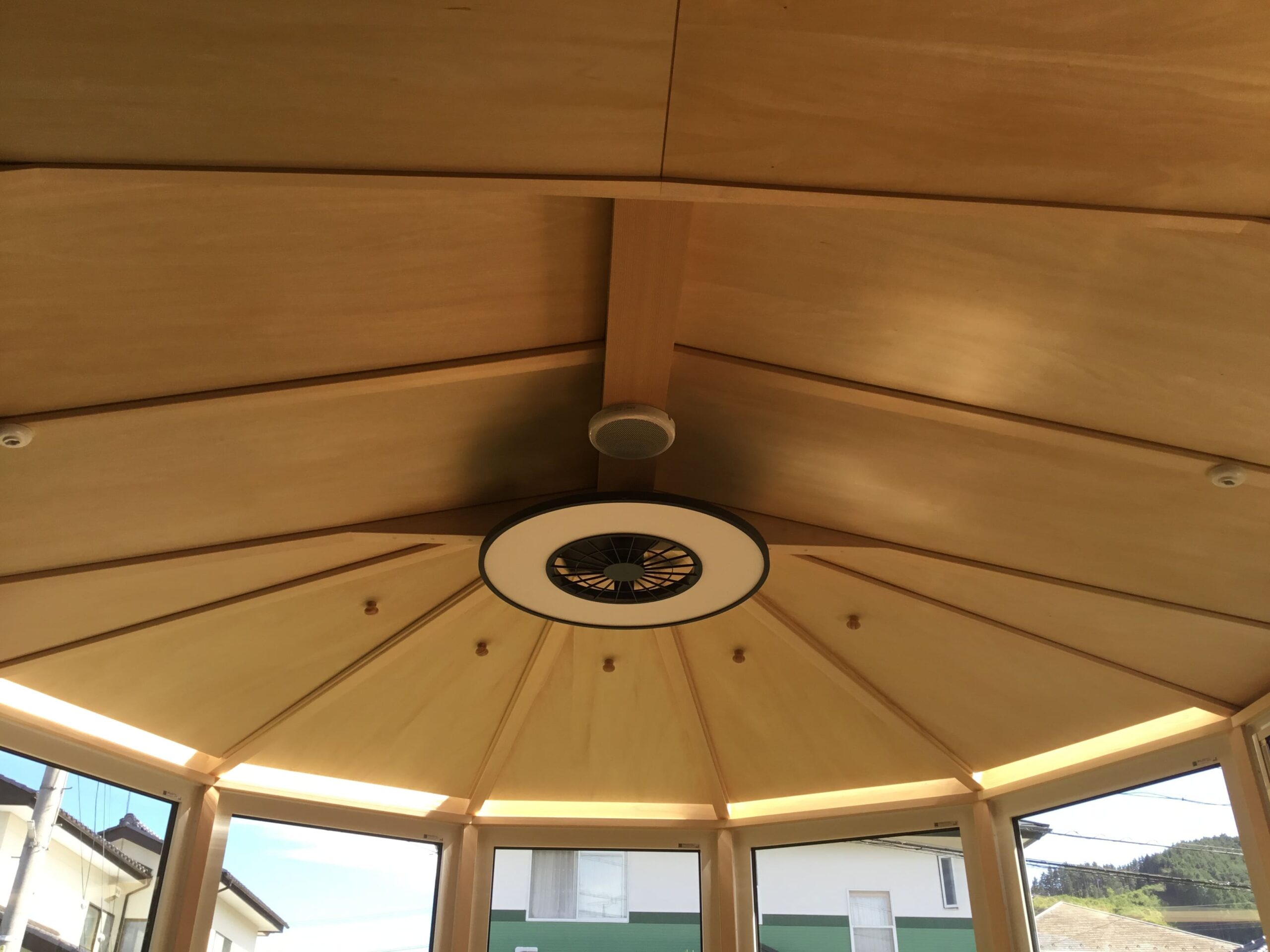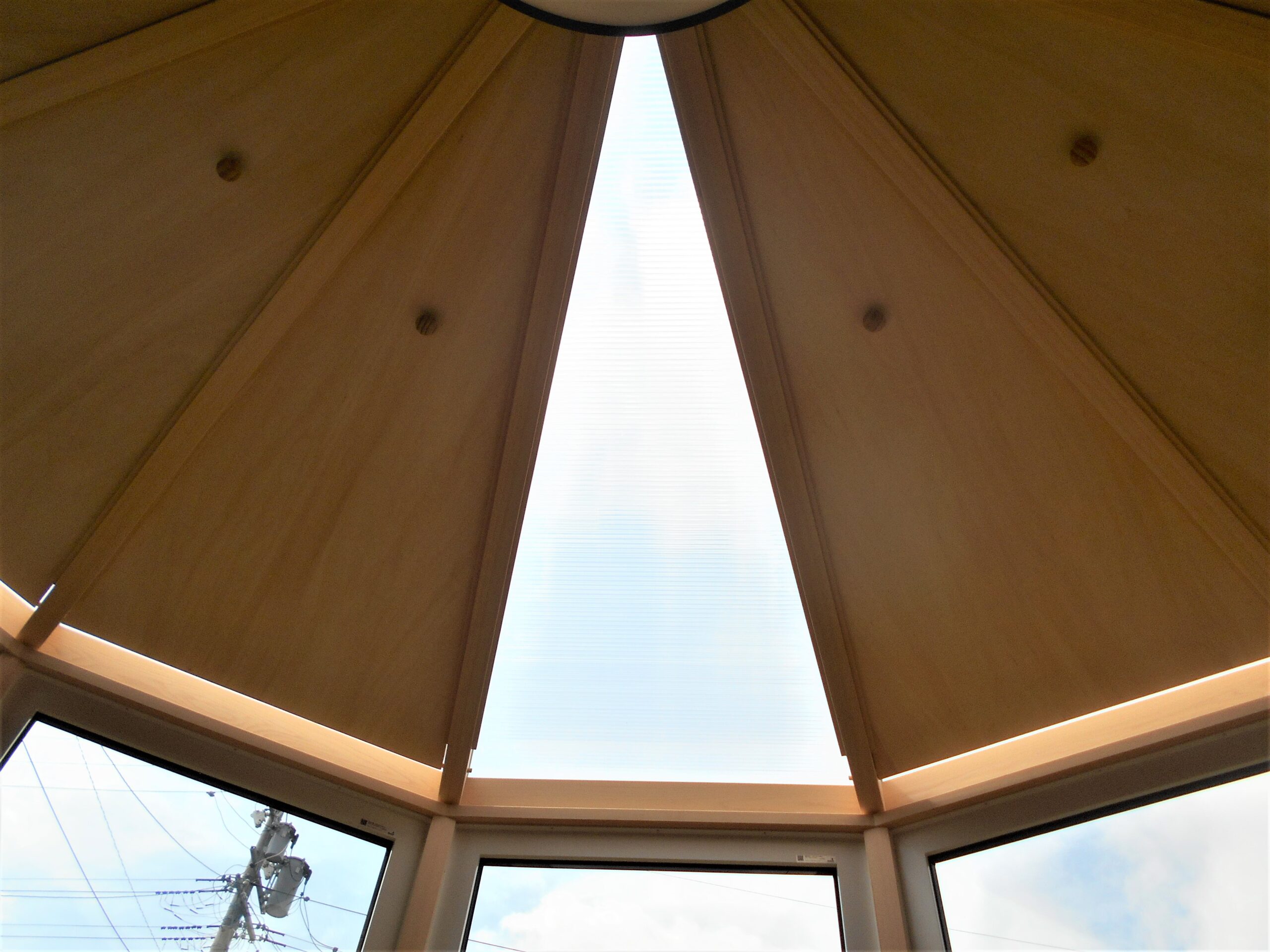 ↓ 悠Uサンルームの特徴である前面円形部分の天井(丸い突起のある部分)は、脱着できる天井です。