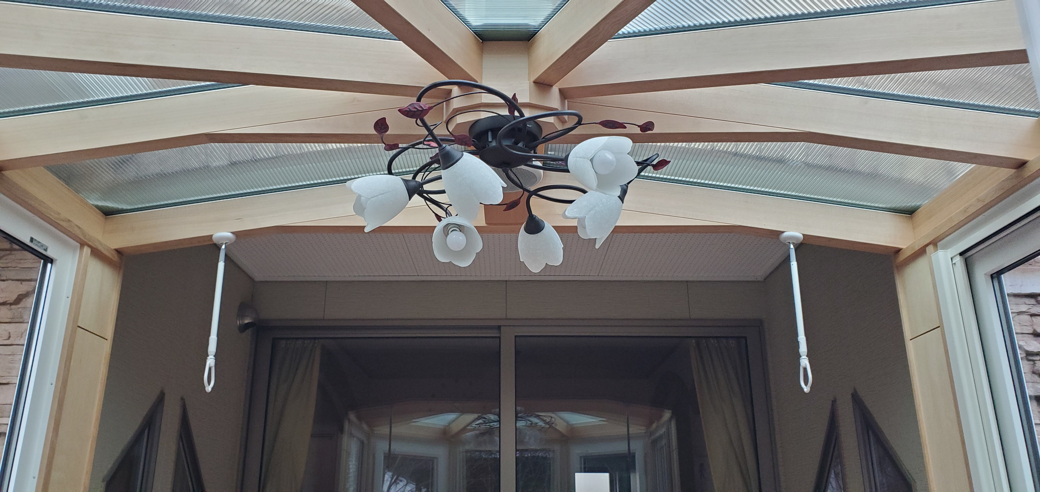 照明器具と物干しを付けました。