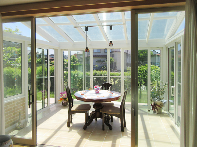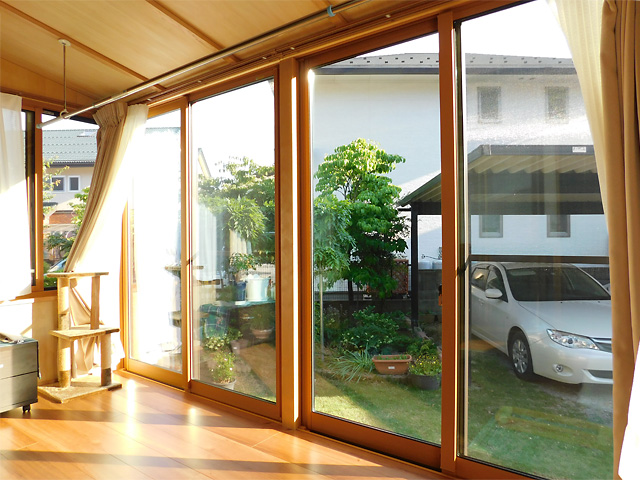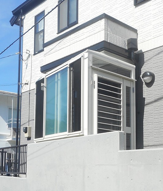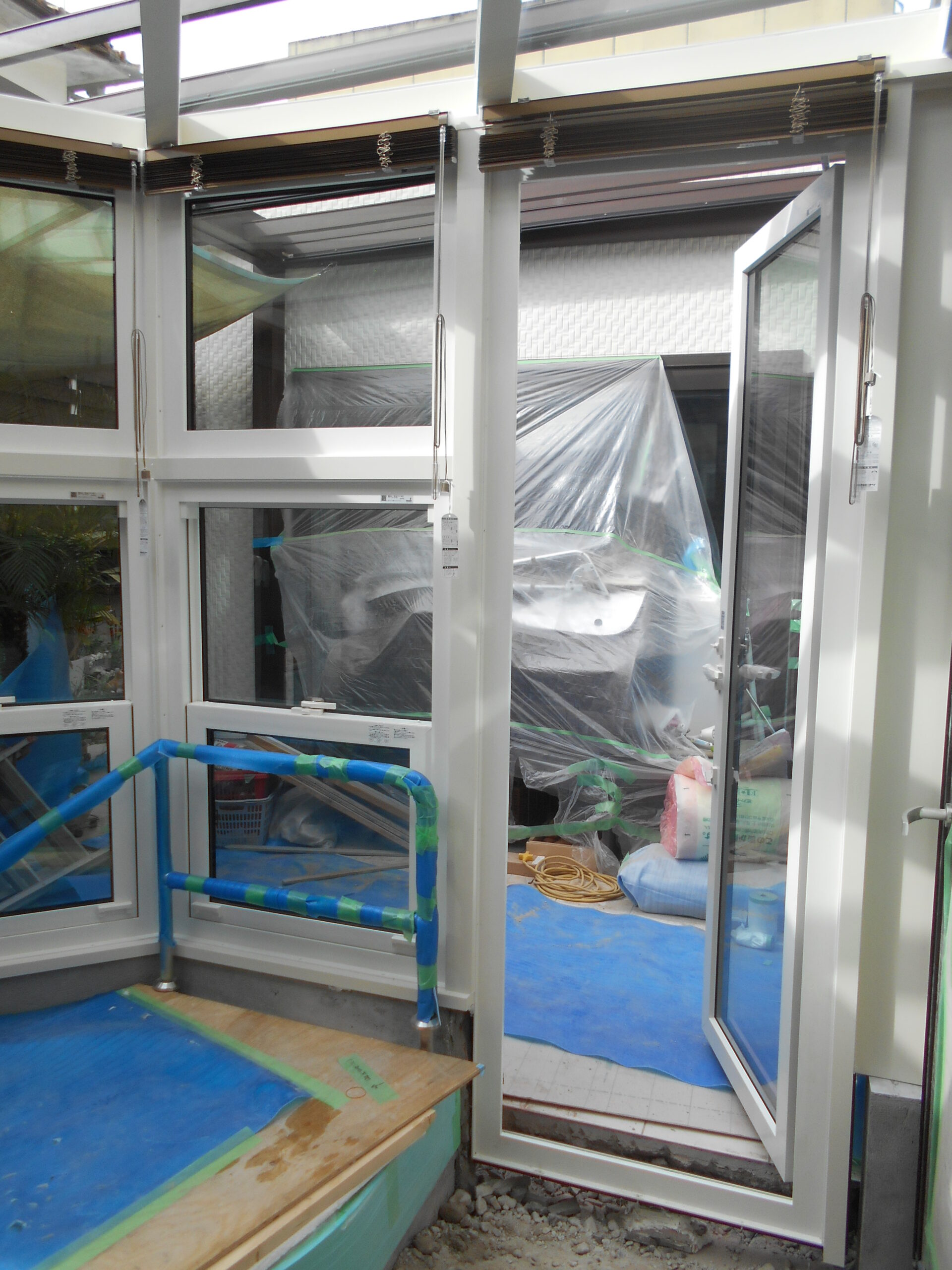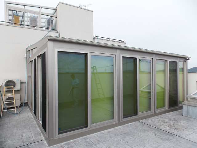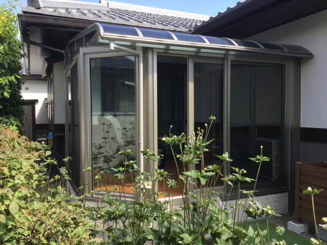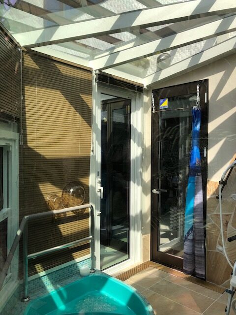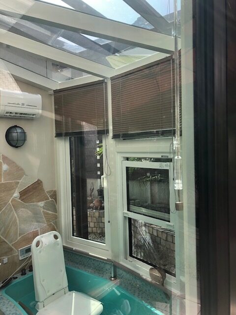 浴室ということで、基準仕様の悠Uサンルームとは違い、内部もアルミ材で仕上げました。