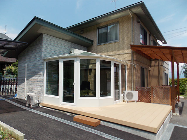 ウッドデッキ・ベランダとの組み合わせ、ガーデニングルーム、2階・屋上への施工など、お客様のご要望にお応えした様々な施工事例をご紹介しております(お客様のご了承をいただいたものを掲載しております)。