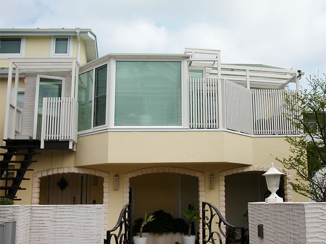 神奈川県鎌倉市 O様 高台にある住宅への設置です。 ↓ 既存のウッドデッキ上に設置しました。 サンル …