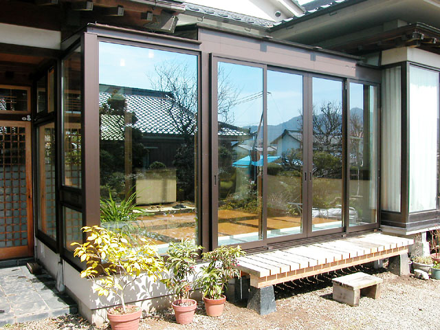 長野県千曲市 M様 既存のテラスに障子を取り付けたサンルームです。 難しい納まり作業もありましたが、 …