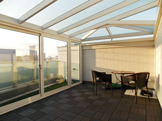 ウッドデッキ・ベランダとの組み合わせ、ガーデニングルーム、2階・屋上への施工など、お客様のご要望にお応えした様々な施工事例をご紹介しております(お客様のご了承をいただいたものを掲載しております)。