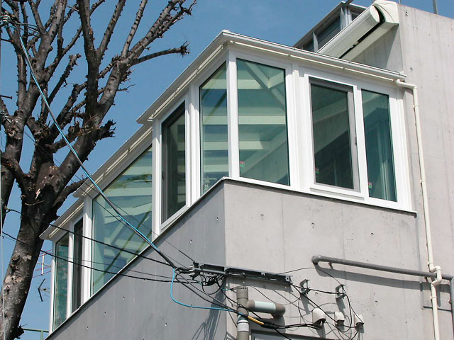 港の見える丘に悠Uサンルーム(兵庫県神戸市篠原台) 家と家をつなぐ階段室を兼ねています。